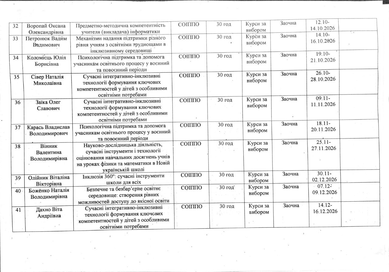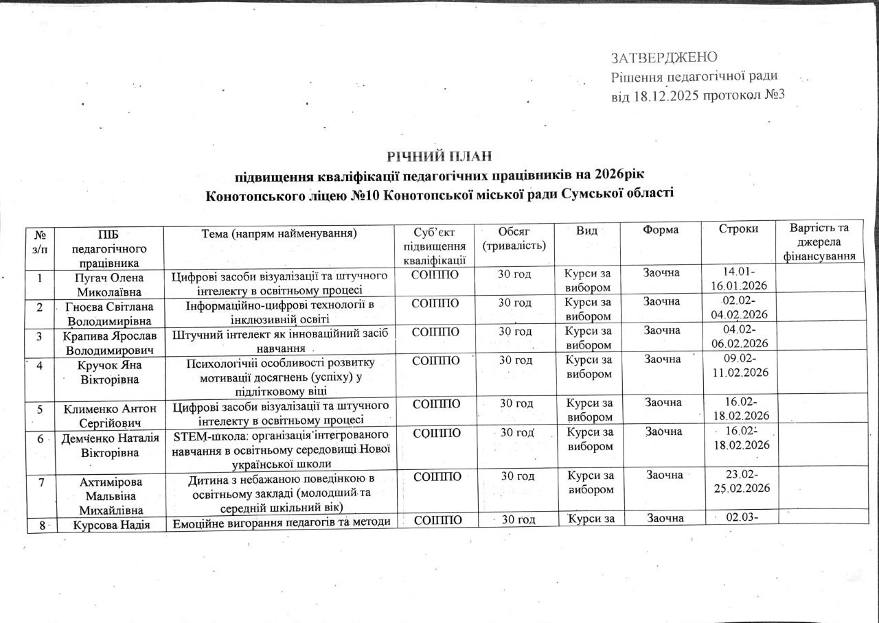 РІЧНИЙ ПЛАН підвищення кваліфікації педагогічних працівників на 2026 рік by sc10adm1 · 26 Грудня, 2025